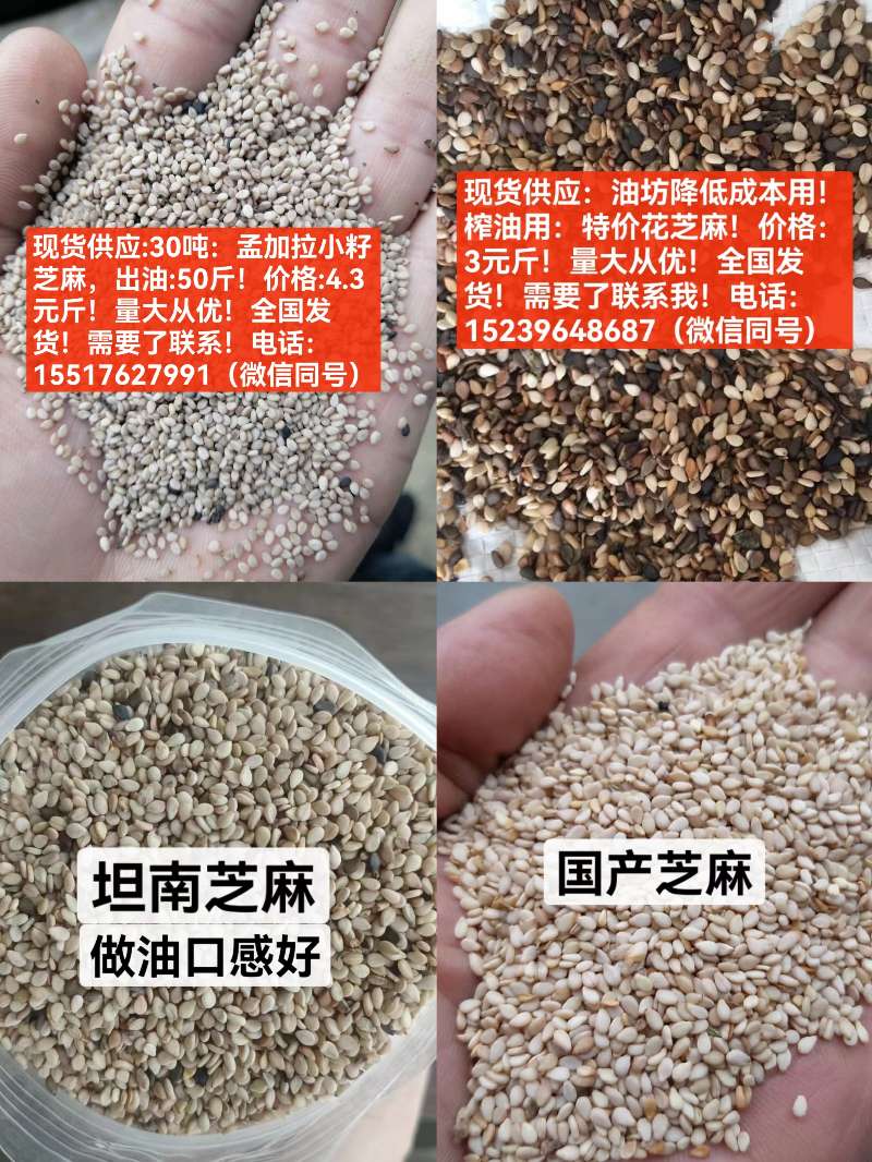 ②:现货供应:尼日芝麻、坦南芝麻、多哥、埃塞芝麻、莫桑、国产芝麻!价格:5元斤-6元斤-6.5元斤等等……