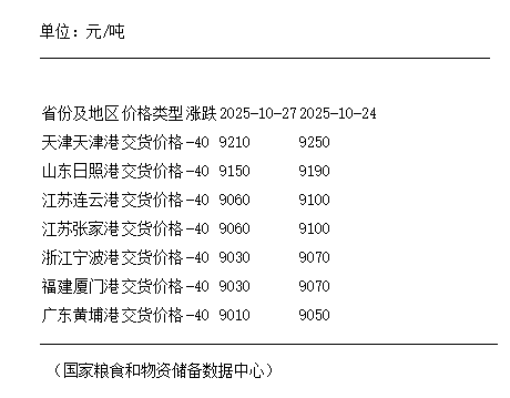10月27日 24度棕榈油国内各港口交货价格下跌