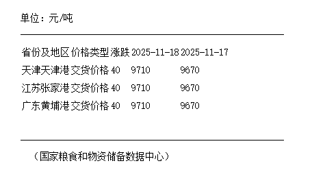 11月18日进口豆油港口交货价格上涨