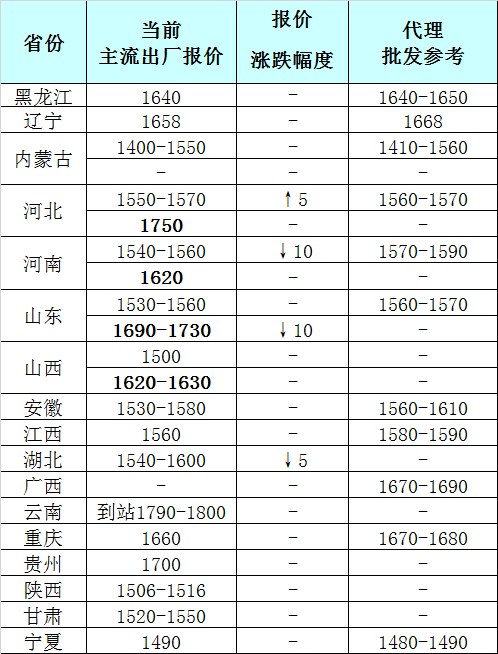 现山东地区尿素主流出厂报价1530-1560元(吨价,下同),报价基本稳定,少数略涨10元,临沂地区复合肥企业对尿素接货价1560-1570元微微上涨;河北地区尿素主流出厂报价1550-1570元;河南地区尿素主流出厂报价1540-1560元;山西地区尿素主流出厂报价1500元,大颗粒出厂报价1620-1630元;安徽地区尿素主流出厂报价1530-1580元;湖北地区尿素出厂报价1540-1600元;陕西地区尿素出厂报价1506-1516元;甘肃地区尿素出厂报价1520-1550元;宁夏地区尿素出厂报价1490元;内蒙古地区尿素主流出厂报价1400-1550元;黑龙江地区尿素主流出厂报价1640元。综上,尿素报价稳中小盘整,期货窄幅稍强。