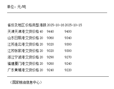 10月16日 24度棕榈油国内各港口交货价格上涨